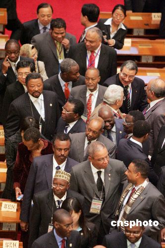 中非合作论坛北京峰会十一月四日在北京人民大会堂开幕,图为非洲代表出席会议。中新社发 毛建军 摄