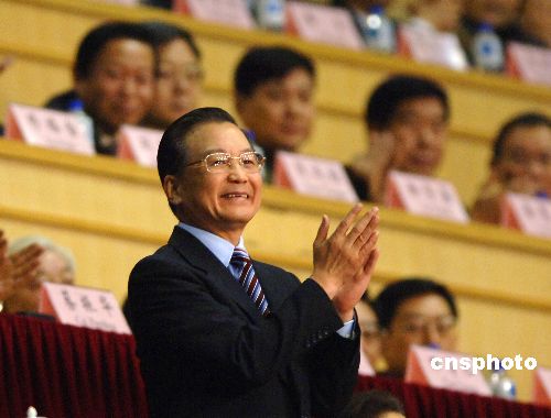 二月四日晚,国务院总理温家宝出席在长春五环体育馆举行的第六届亚洲冬季运动会闭幕式。中新社发 廖攀 摄