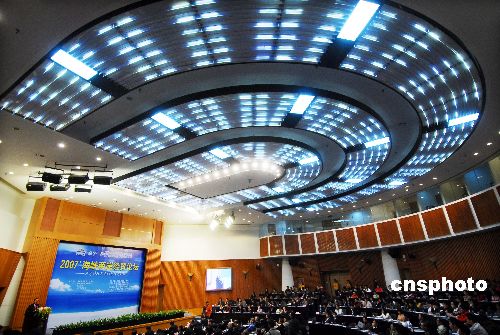 4月8日,2007海峡两岸经贸论坛会议在厦门召开。台湾新党主席郁慕明参加了海峡两岸经贸论坛,并作演讲。中新社发 柳涛 摄