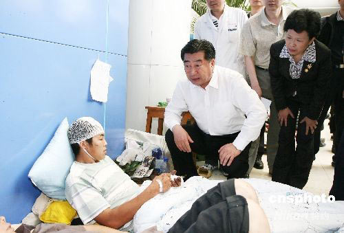 5月15日,中共中央政治局委员、国务院副总理、抗震救灾总指挥部副总指挥回良玉,赶赴受灾最严重、伤亡人数最多的四川绵阳灾区察看灾情,看望受灾群众,慰问正在紧张抢险救援的部队官兵、公安干警、医护人员和基层干部,现场协调解决有关问题。中新社发 蒲滔 摄