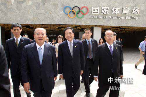 图:吴伯雄一行参观“鸟巢”