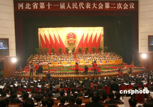 河北省第十一届人民代表大会第二次会议1月8日在石家庄开幕,七百余名人大代表齐聚河北会堂,听取和审议省政府工作报告。报告中提出该省今年经济增长9%的目标。中新社发 田张梦 摄