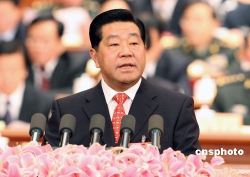 全国政协十一届二次会议3月3日下午在北京人民大会堂开幕,全国政协主席贾庆林作全国政协常委会工作报告。中新社发 宋吉河 摄