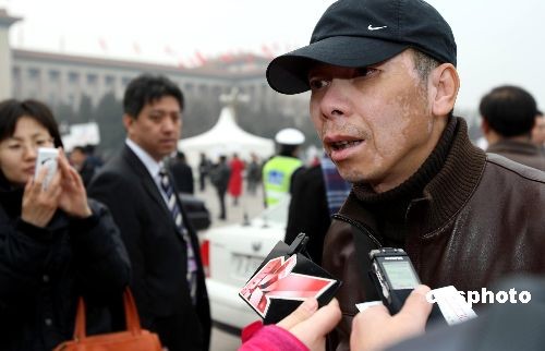 3月3日下午,全国政协十一届二次会议在北京人民大会堂开幕,导演冯小刚出席开幕大会。中新社发 傅丹丹 摄