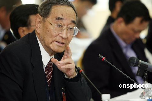 3月6日,著名经济学家厉以宁在参加全国政协经济界分组讨论会时点评现今中国经济热点,表示经济不会滑坡。中新社发 傅丹丹 摄