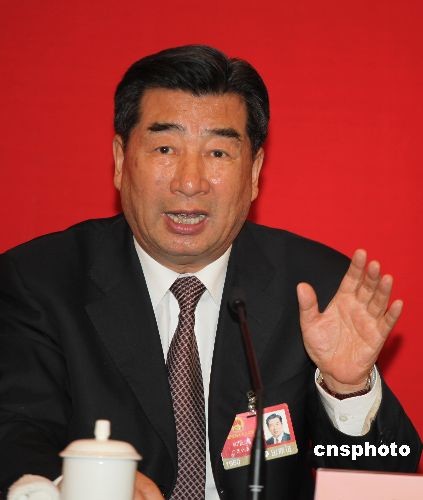 3月6日,中共中央政治局委员、国务院副总理回良玉和贵州代表一起审议政府工作报告,并听取代表意见。中新社发 张娅子 摄
