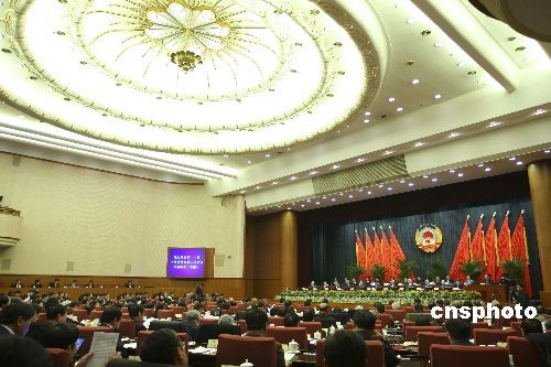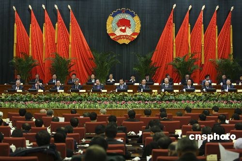 3月11日,政协第十一届全国委员会常务委员会第五次会议在北京举行,全国政协主席贾庆林出席并主持会议。会议通过政协第十一届全国委员会第二次会议关于常务委员会工作报告的决议(草案),审议通过政协第十一届全国委员会提案委员会关于政协十一届二次会议提案审查情况的报告(草案),通过政协第十一届全国委员会第二次会议政治决议(草案)。中新社发 盛佳鹏 摄
