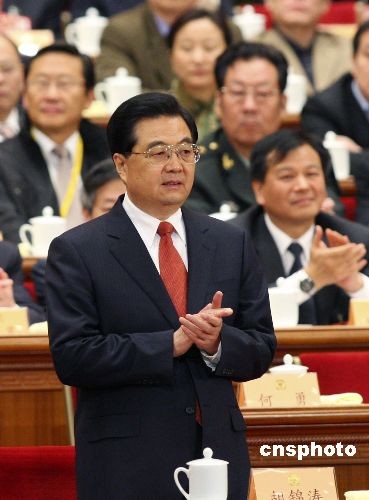 3月12日,全国政协十一届二次会议举行闭幕大会,国家主席胡锦涛出席闭幕大会。中新社发 盛佳鹏 摄