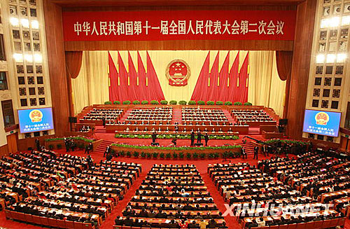 3月13日9时,第十一届全国人民代表大会第二次会议在北京人民大会堂举行闭幕会。