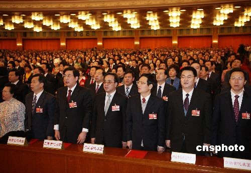 3月13日上午,第十一届全国人民代表大会第二次会议在全体代表的国歌声中闭幕。中新社发 任晨鸣 摄