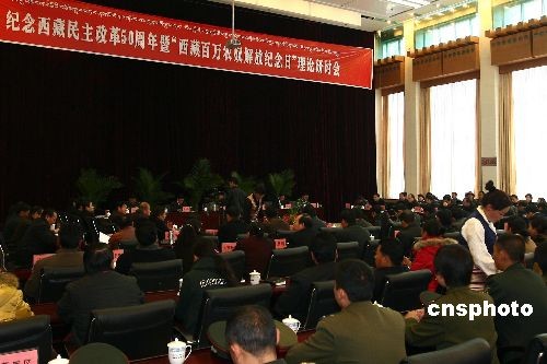 3月20日,纪念西藏民主改革50周年暨“西藏百万农奴解放纪念日”理论研讨会在拉萨召开,西藏自治区人大常委会主任列确出席会议。中新社发 杜洋 摄