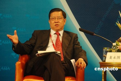 4月17日,海南博鳌,博鳌亚洲论坛2009年会举行新闻发布会。博鳌亚洲论坛秘书长龙永图表示,博鳌亚洲论坛希望成为发展中国家和新兴经济体发出自己声音的重要平台。 新社发 尹海明 摄