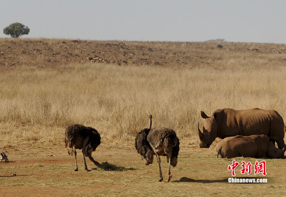 当地时间6月26日,记者前往南非豪登省狮子和犀牛公园,这里可近距离观赏野生动物。中新社记者 廖攀 摄