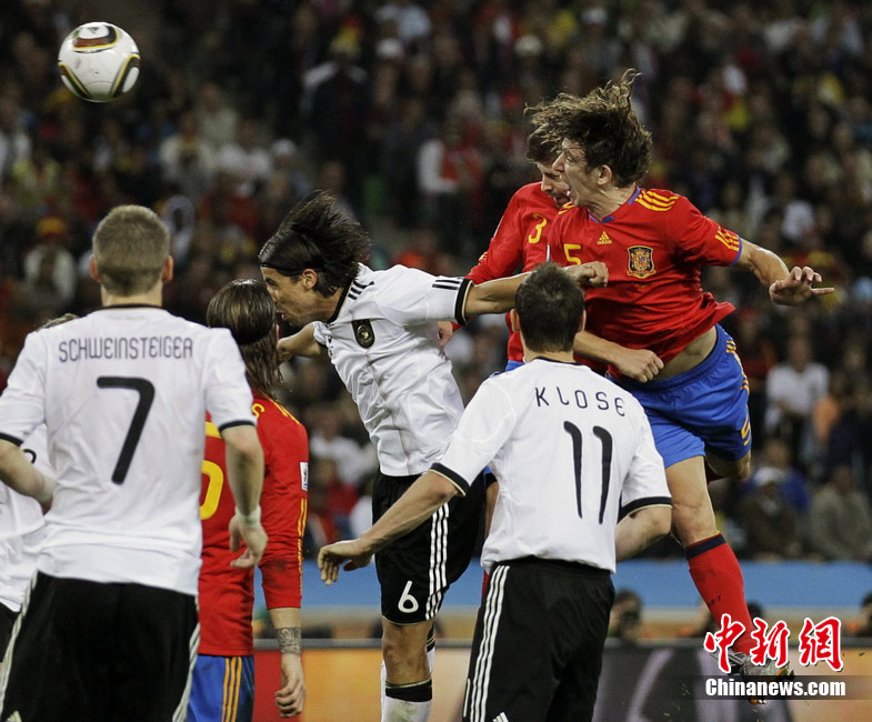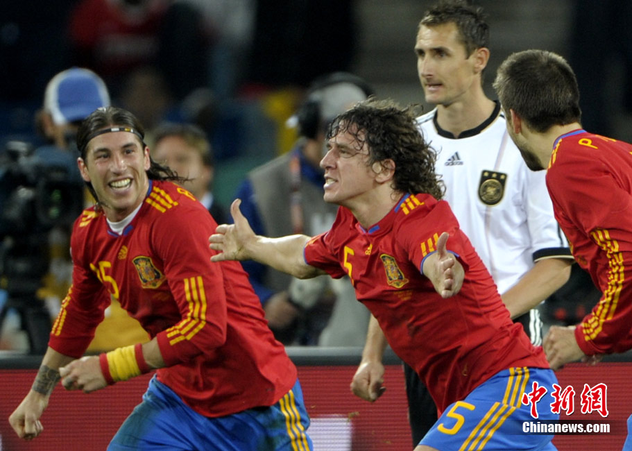北京时间7月8日凌晨2:30,南非世界杯第二场半决赛在德班球场拉开战幕,由德国队迎战西班牙。凭借普约尔在第73分钟的头球破门,西班牙队1-0力克德国,与荷兰队会师决赛。