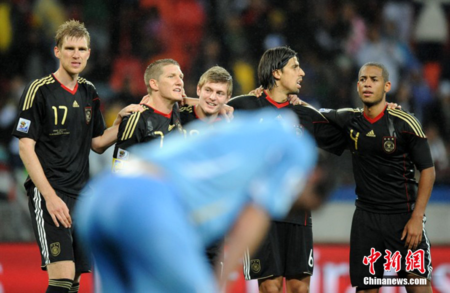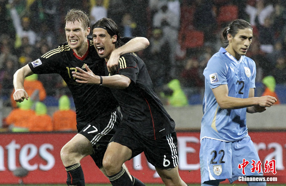北京时间7月11日凌晨2:30,南非世界杯进行了三四名决赛的争夺战,由乌拉圭在伊丽莎白港的纳尔逊·曼德拉海湾球场迎战德国队。最终在一场进球大战中,德国队凭借第82分钟赫迪拉的进球一锤定音,以3-2险胜对手,获得南非世界杯第三名。