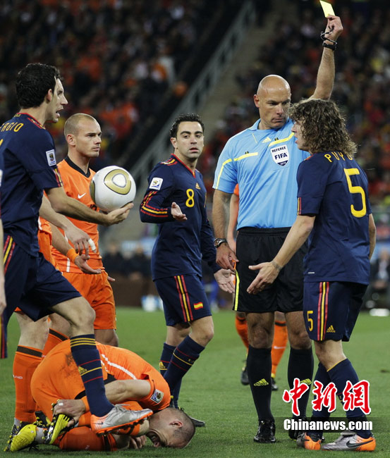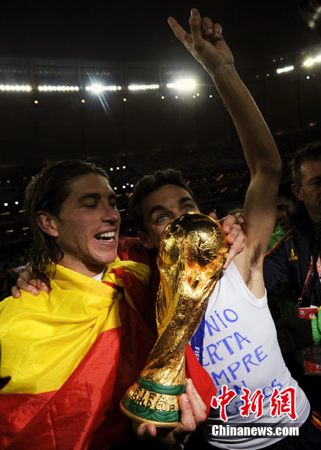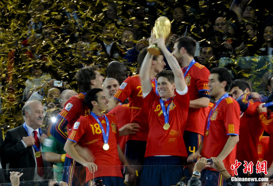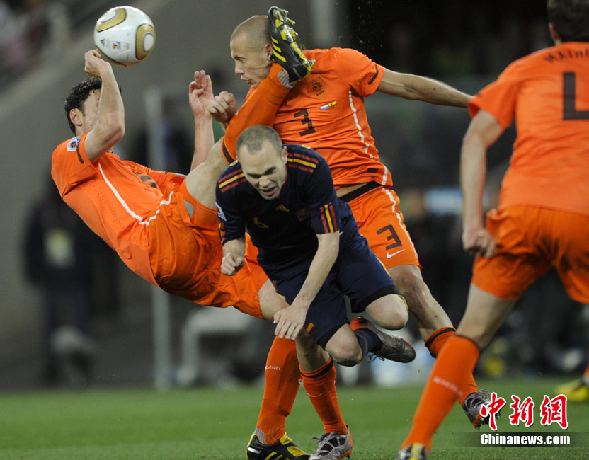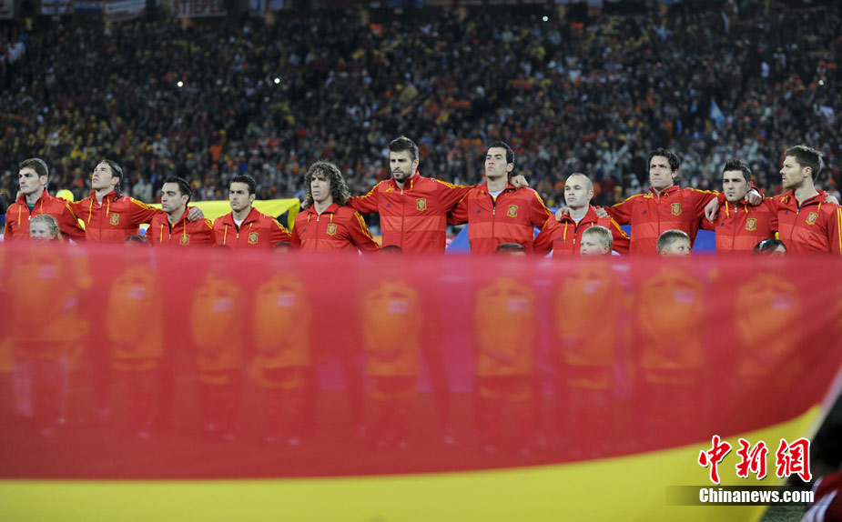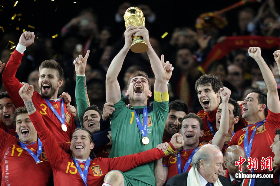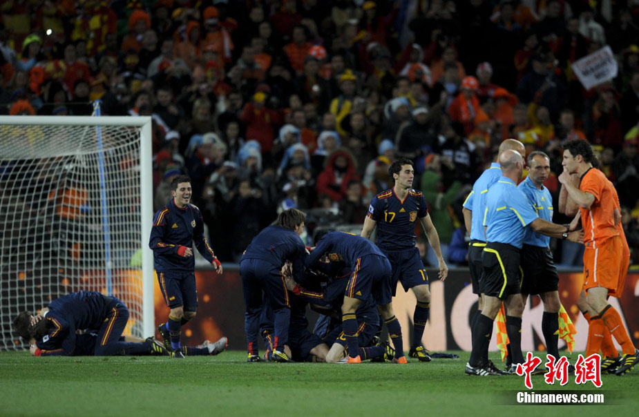 北京时间7月12日凌晨2:30,南非世界杯迎来了最终的决赛,在约翰内斯堡的足球城球场由荷兰队对阵西班牙。最终双方经过120分钟鏖战,伊涅斯塔在第116分钟攻入全场唯一一粒进球,绝杀十人应战的荷兰队,史上首次夺得冠军。