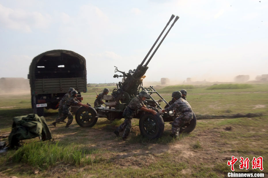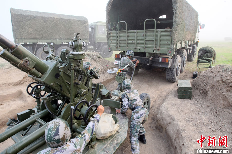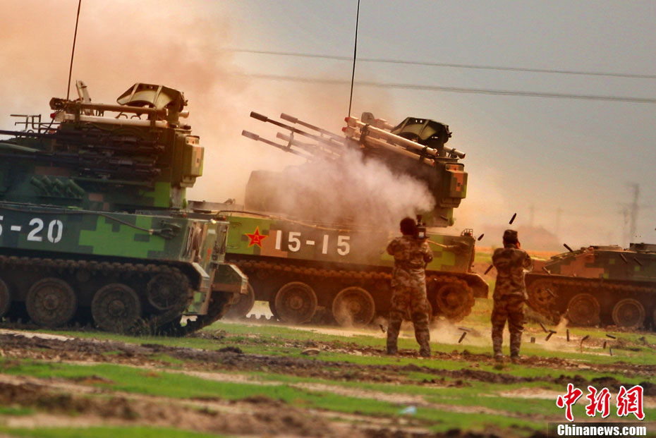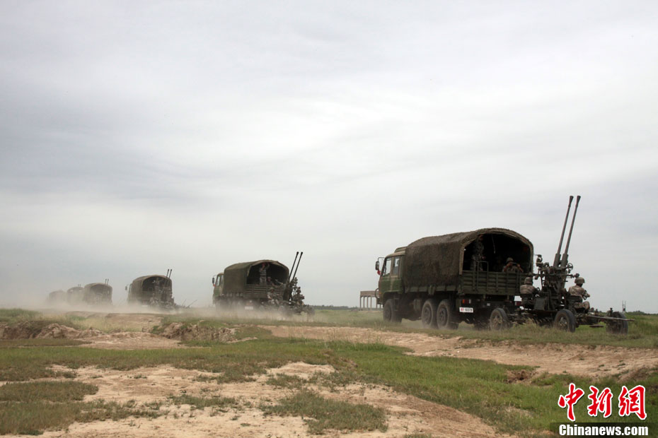 担负“前卫—2010”陆军防空部队“单元合成”演练任务的驻济某防空旅到达演习预定地域后,不顾长途行军的疲劳,迅速投入到演习任务的各项演练中,并对前期的战术演练效果反复检验和完善,对某新型指挥系统进行联网预演,为演习的顺利进行做好了一切准备。行进间射击演练。贾愚 王侃 摄