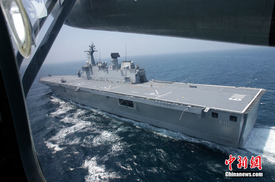 8月5日,韩国海军舰艇和直升机参加在朝鲜半岛西部的韩国海域单独举行的反潜演习。