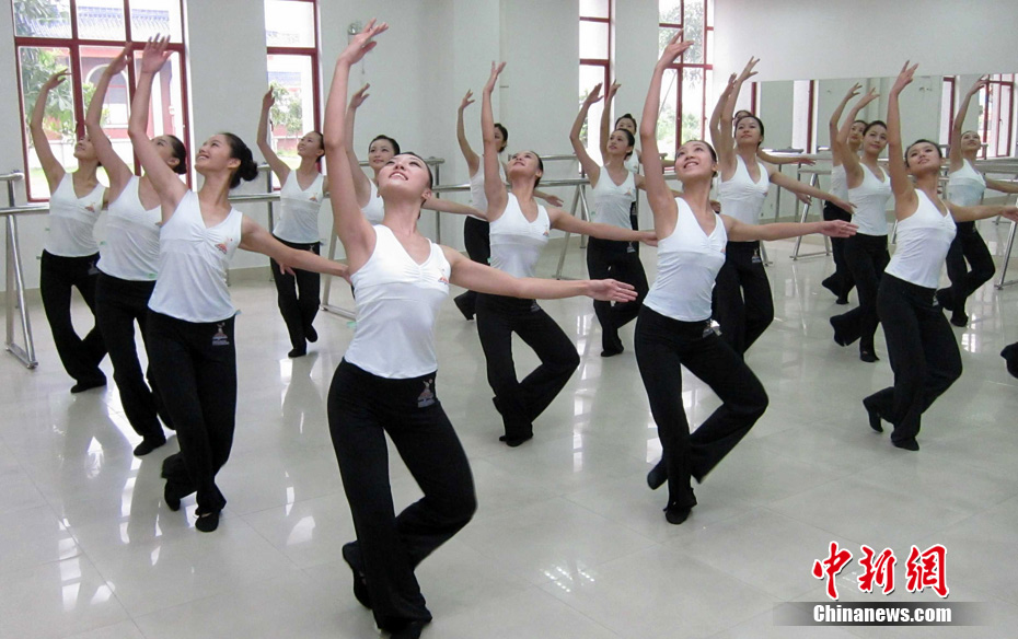 日前,500多位来自全国各地的“亚运天使”在南方医科大学顺德校区校园中,为亚运赛场上的精彩亮相紧张辛苦的训练。广州亚运会期间,颁奖礼仪团队将完成476场颁奖仪式,合计颁发3989枚奖牌。中新社发 柯小军 摄