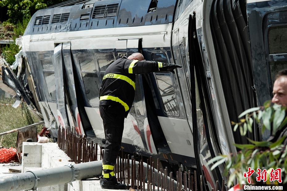 8月6日,意大利那不勒斯附近的一列火车发生出轨事故,造成1人死亡,30余人受伤。在事故现场,救援人员在紧张工作。