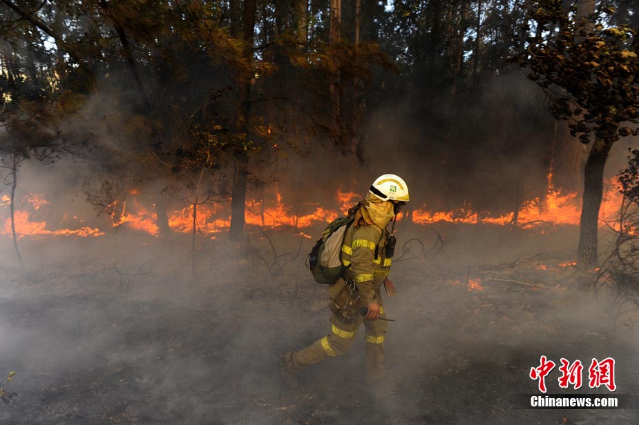 西班牙森林大火肆虐 浓烟遮天蔽日