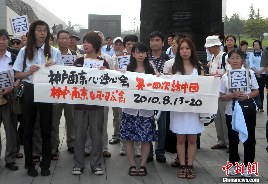 为纪念二战期间在日本遇害的6830名被强掳的中国劳工,8月14日下午,在侵华日军南京大屠杀遇难同胞纪念馆广场,被掳劳工中的幸存者及遇难者家属、日本友人等近50人举行了6830双布鞋摆放活动。中新社发 江法 摄 图片来源:cnsphoto