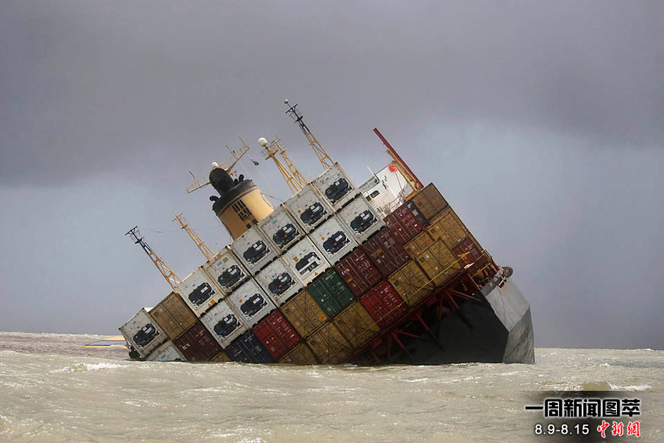 周一(9日),巴拿马籍集装箱船倾斜地漂在孟买附近阿拉伯海域。这艘船在上周日与一艘圣基茨籍船只相撞并导致原油泄漏。