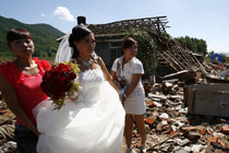 8月16日,甘肃舟曲特大山洪泥石流灾区开始拆危清墟,受灾群众将废墟中的家具转移到安全地区。中新社发 杜洋 摄