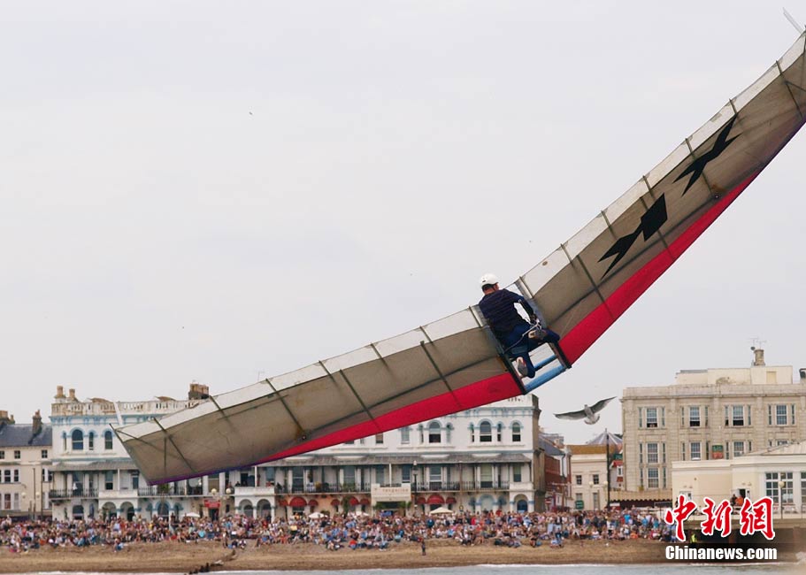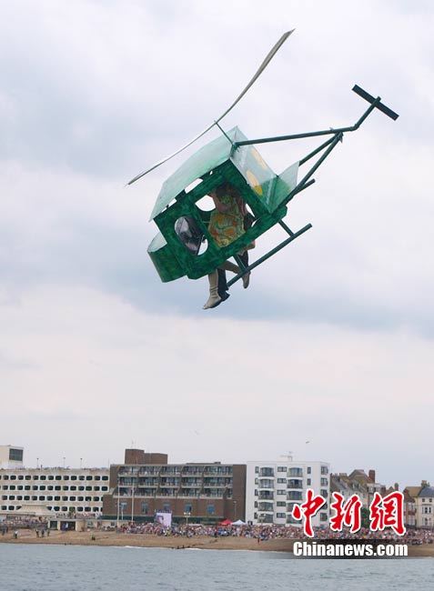 近日,一年一度的沃辛国际鸟人大赛在英国苏塞克斯的一个海边小镇举行。选手们不仅带来造型奇特的飞行装置,还身着搞笑服装以吸引观众注意。