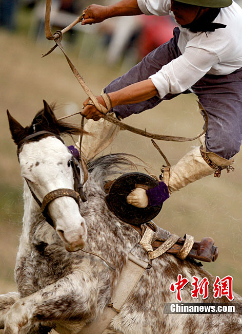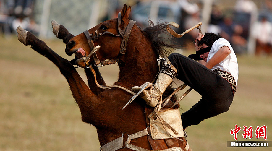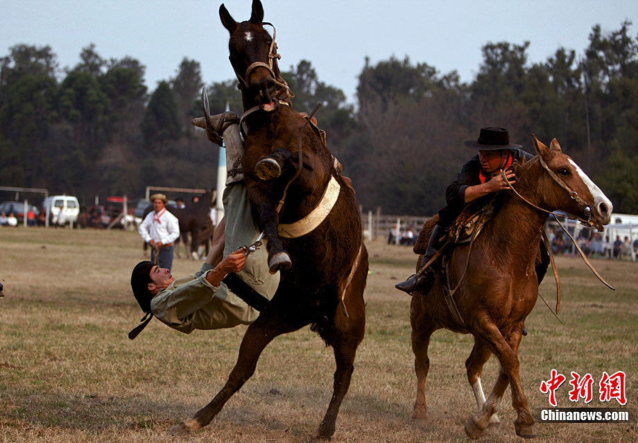 阿根廷高乔民俗节上的惊险马术表演
