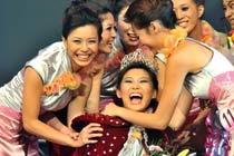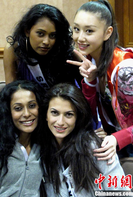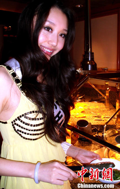 当地时间8月22日 ,正在美国拉斯维加斯参加第59届“环球小姐”(Miss Universe)总决赛的各国佳丽进入最后彩排,在紧张的训练排练之余,佳丽们利用15分钟的就餐时间谈笑风声。图为环球中国小姐唐雯拉斯维加斯备战决赛。中新社记者 钱兴强 摄