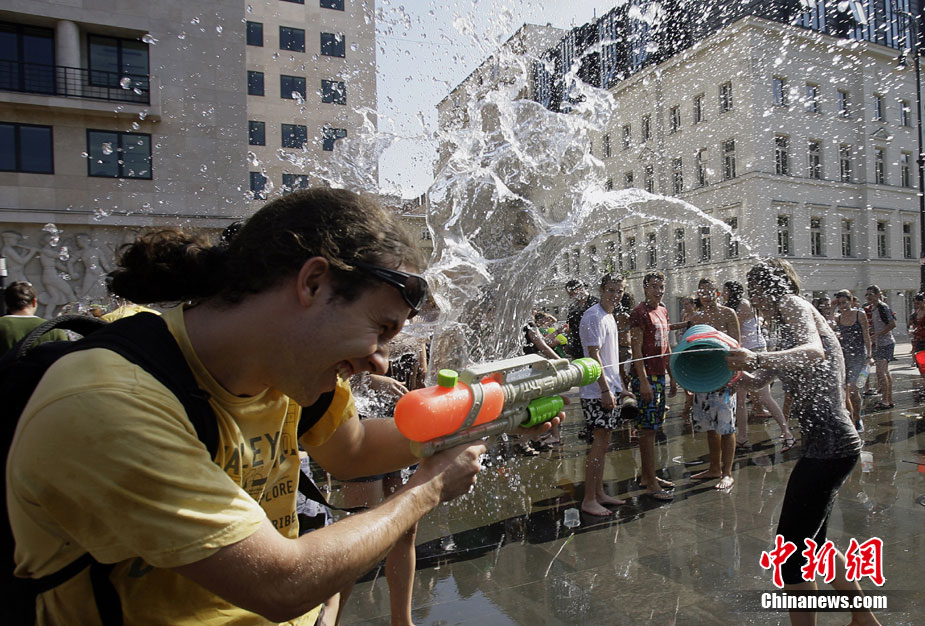 近日,在匈牙利首都布达佩斯的广场上举行了第三届“水枪大战”,民众纷纷拿起“武器”,在炎炎夏日里展开了一场别开生面的比拼。