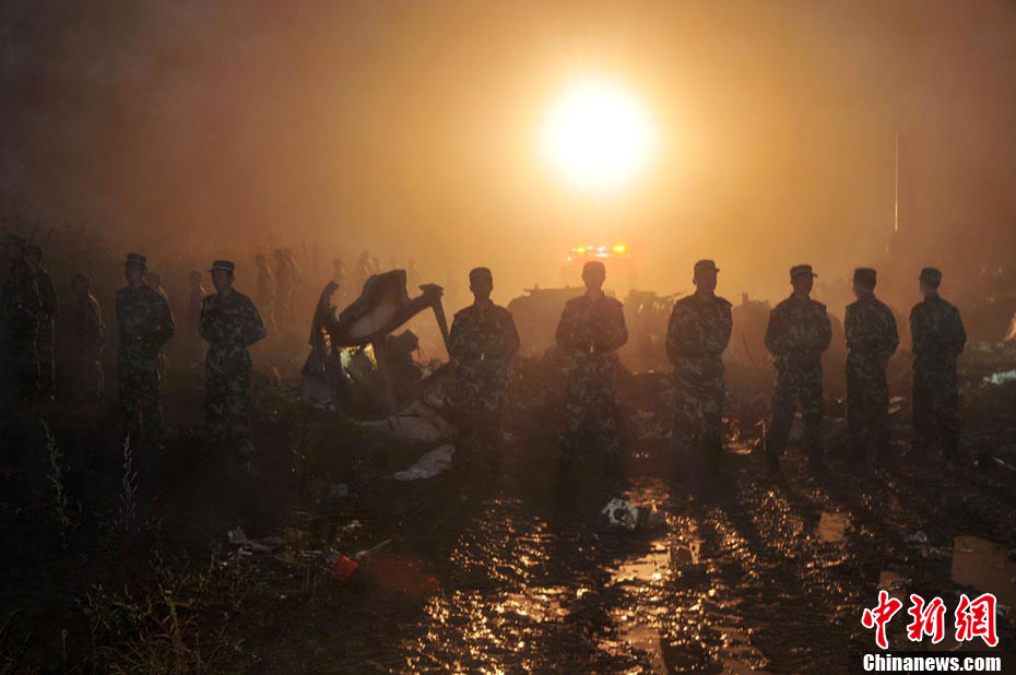 24日21时36分许,河南航空有限公司(原鲲鹏航空公司)一架由哈尔滨飞往伊春的E190型飞机在抵达伊春机场降落时失事,机上包括5名机组人员在内共96人。失事现场发现42具遇难者遗体,其余54人获救送医,目前无生命危险。图为飞机失事现场 张恩普 王志富 摄