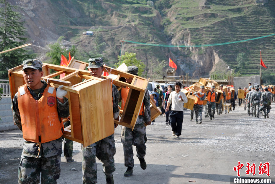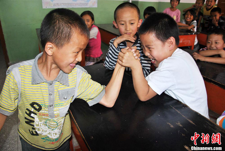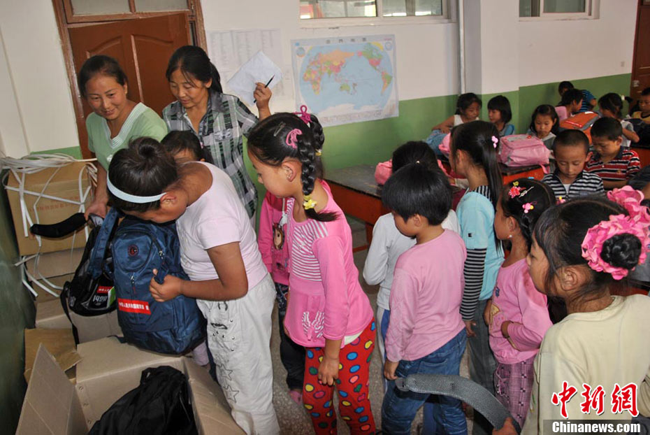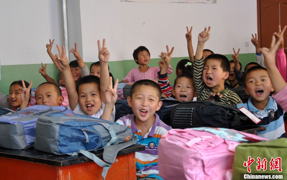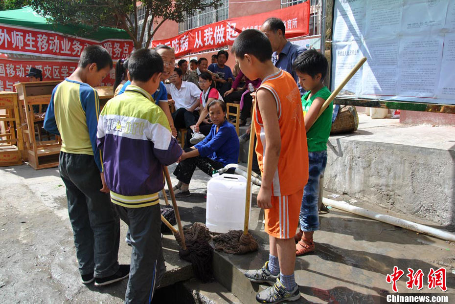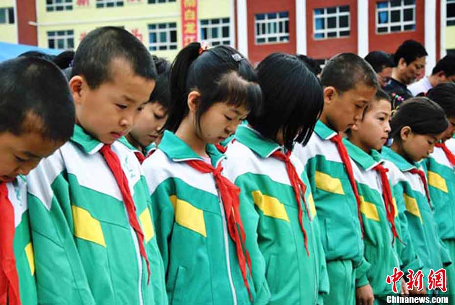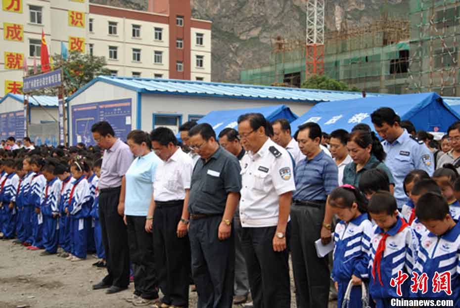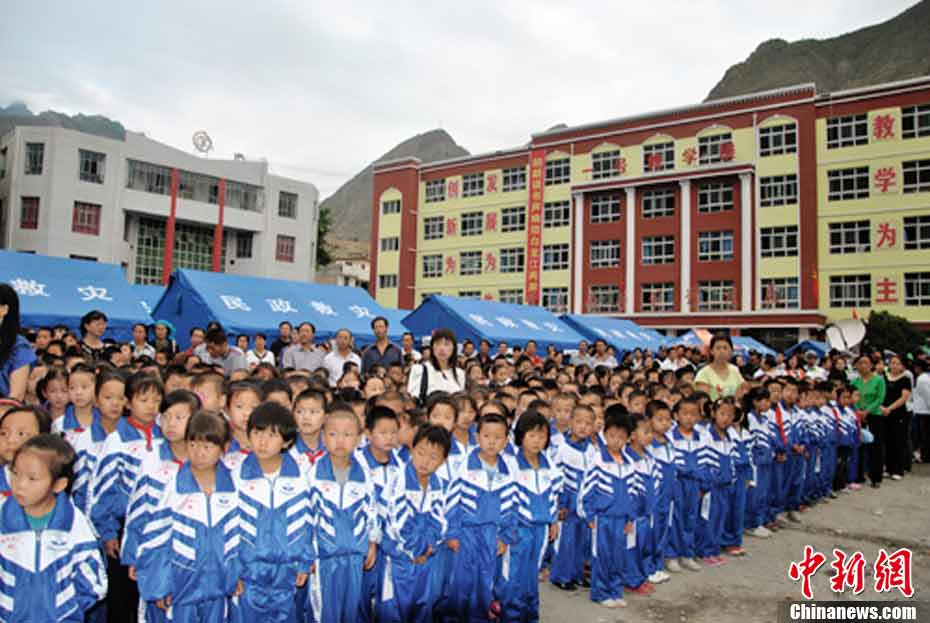 8月25日,舟曲小学生迎来新学期的第一天。图为当日上午城关一小举行升国旗仪式。马晓俊 摄