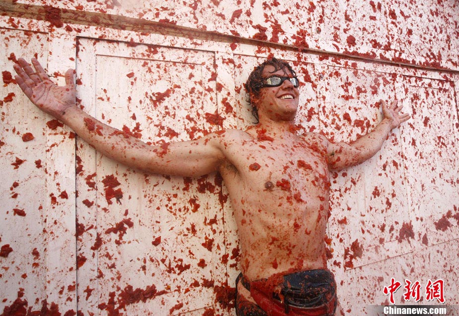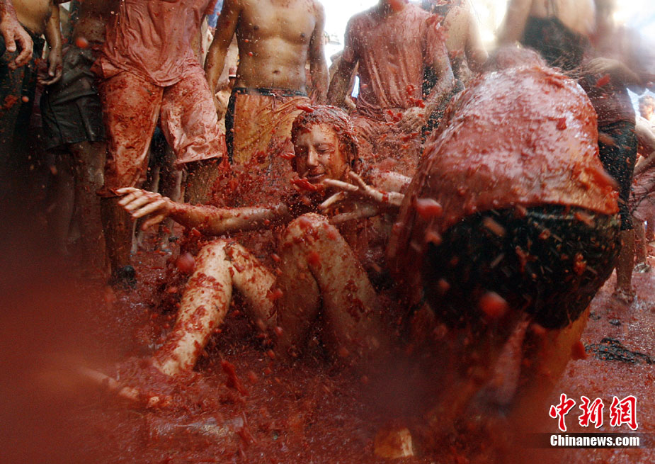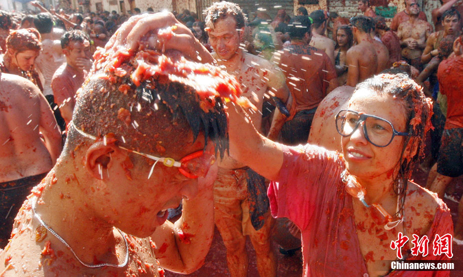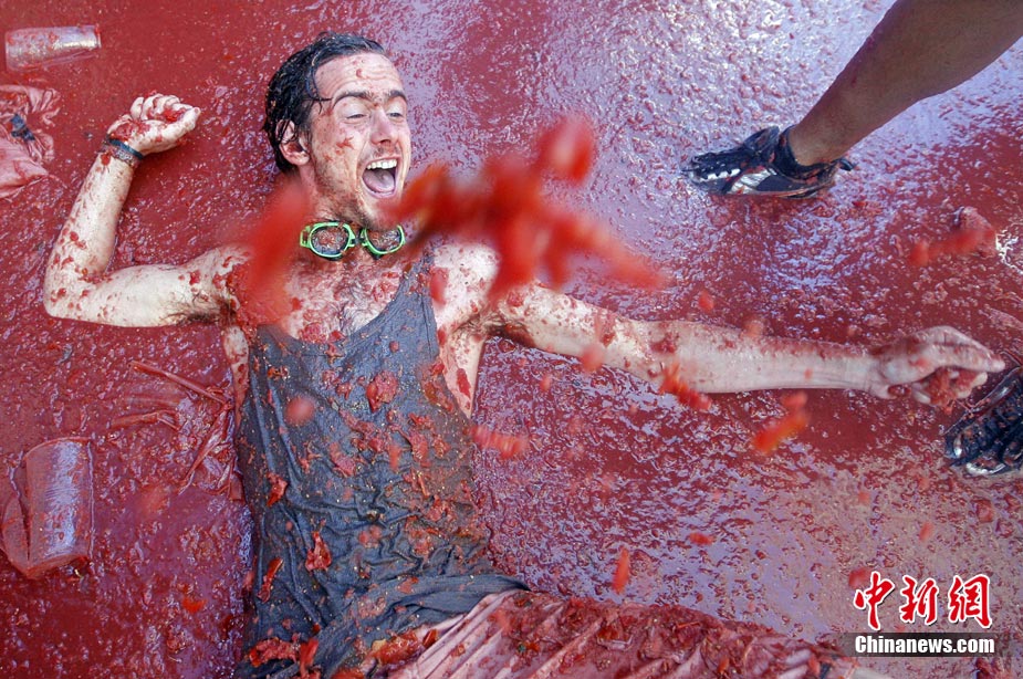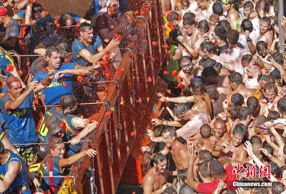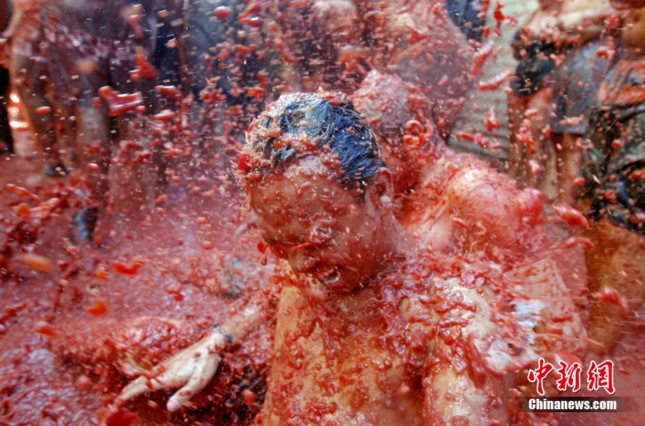 8月25日,西班牙东南部小镇Bunol迎来传统的西红柿狂欢节。超过4.5万人参加了此次活动,预计消耗了超过100吨西红柿。这也是世界上最大规模的“番茄大战”。