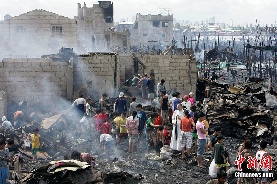 菲律宾首都发生火灾 300多间房屋被烧毁