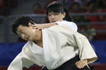 8月28日下午,首届世界武搏运动会相扑男子重量级比赛在北京中国农业大学体育馆结束,冠亚季军获得者分别为:俄罗斯选手艾伦·卡拉耶夫(中)、日本选手田中宏明(左)和日本选手姬野隆。中新社记者 侯宇 摄