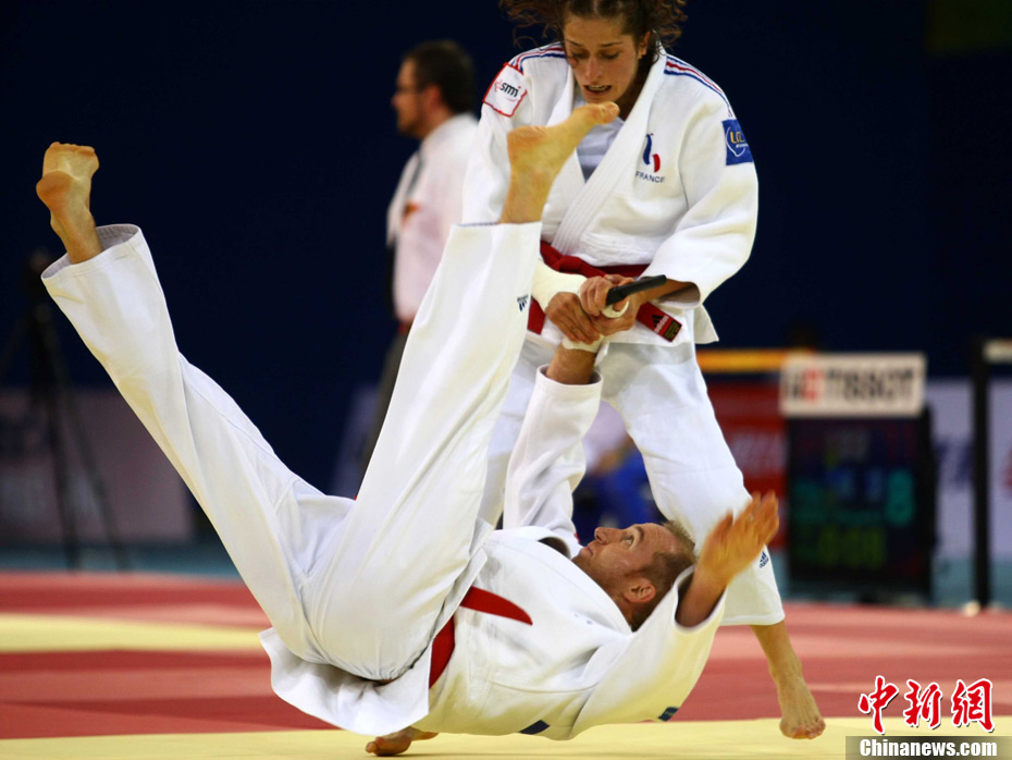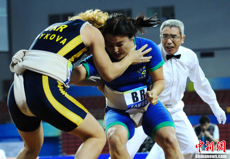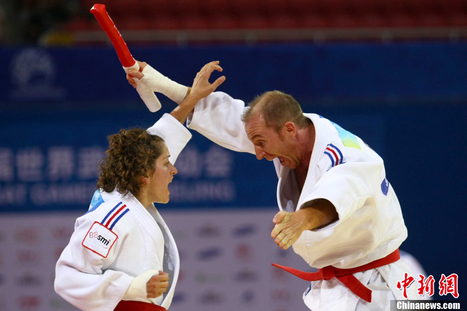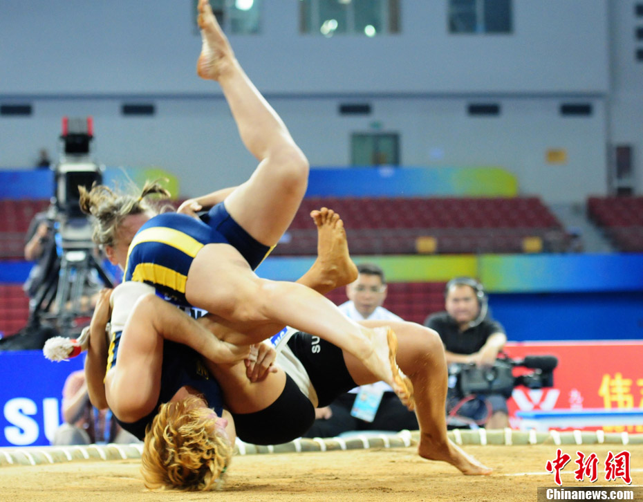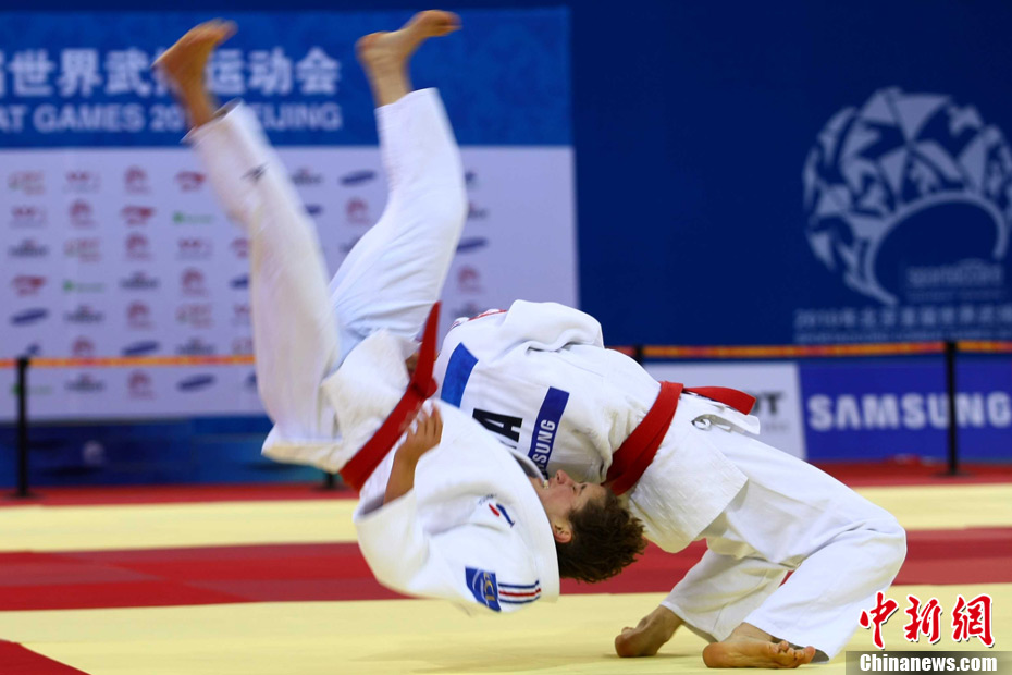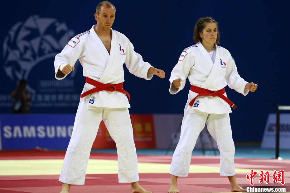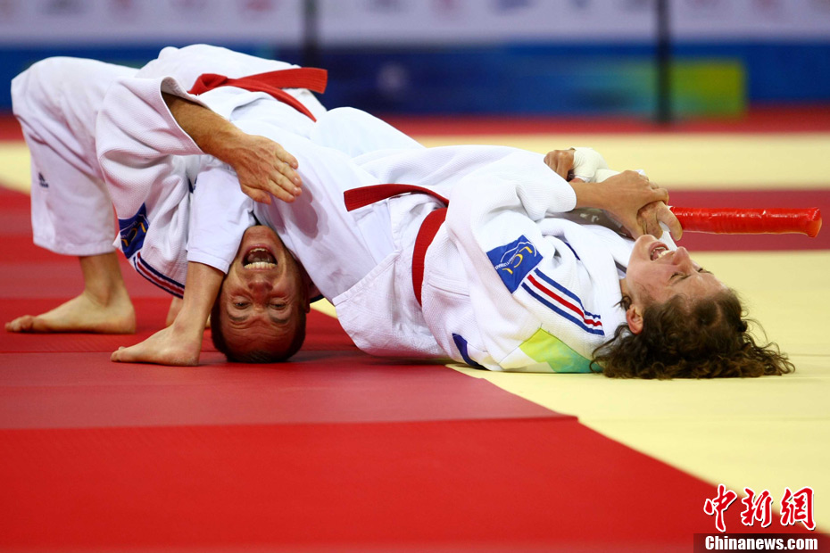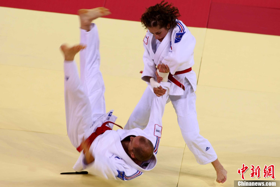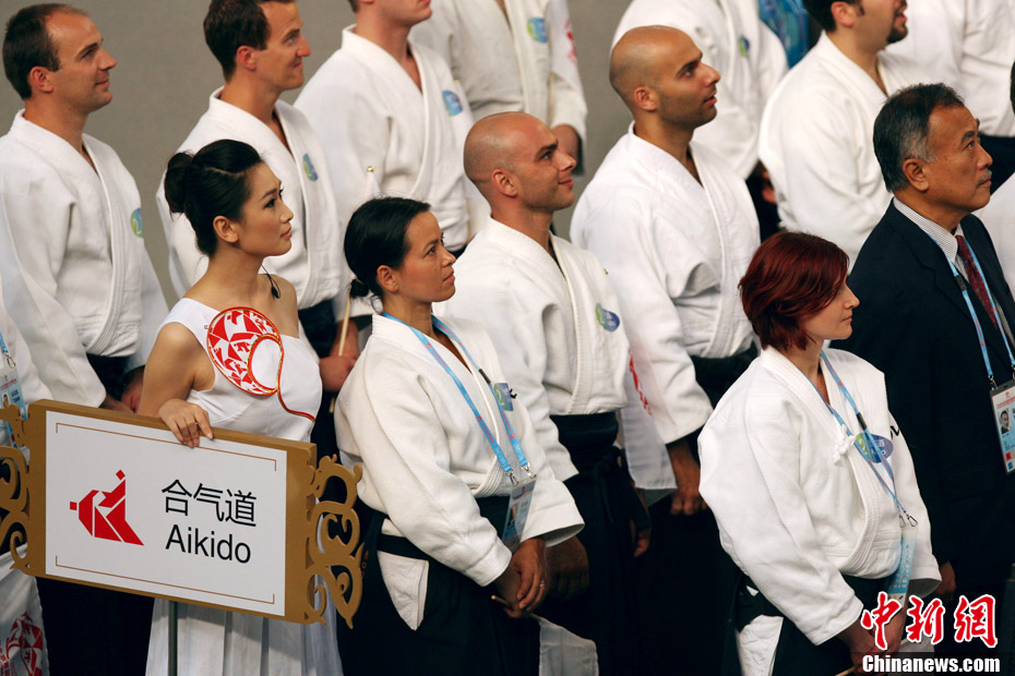 8月30日,男女选手在北京武搏会合气道比赛上演了“异性对决”。合气道是一种根源于日本大东流合气柔术的近代武术,合气道不注重比赛的胜负,没有跟别人较量的思想,而是跟他人一起锻炼和修养自己,因此才会有鲜见的异性同场对决的场面出现。本次武搏会,合气道将作为表演项目,无特别的规则,因此不能够严格地定义胜利者或者失败者。国际合气道联合会将组织高段教官来评判各项表演,表演赛分为基本技巧、高级技巧和复合技巧等三个单元。 中新社发 苏丹 摄