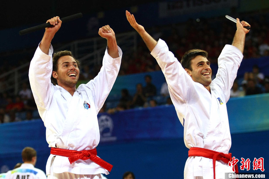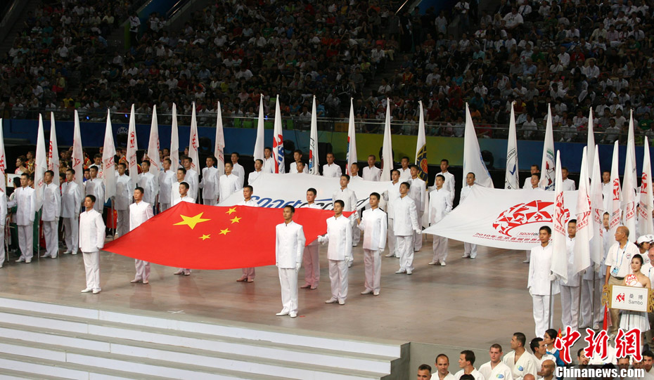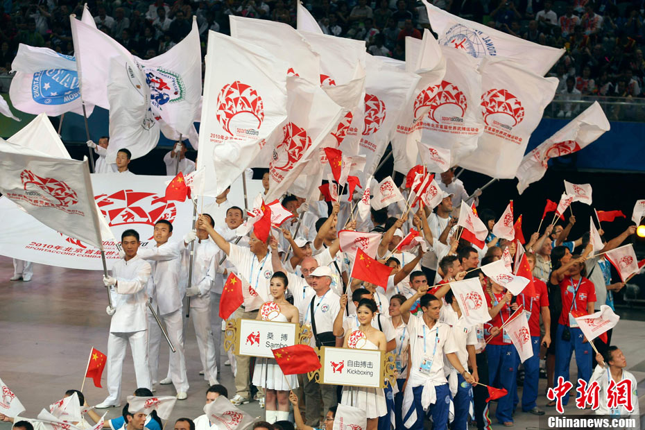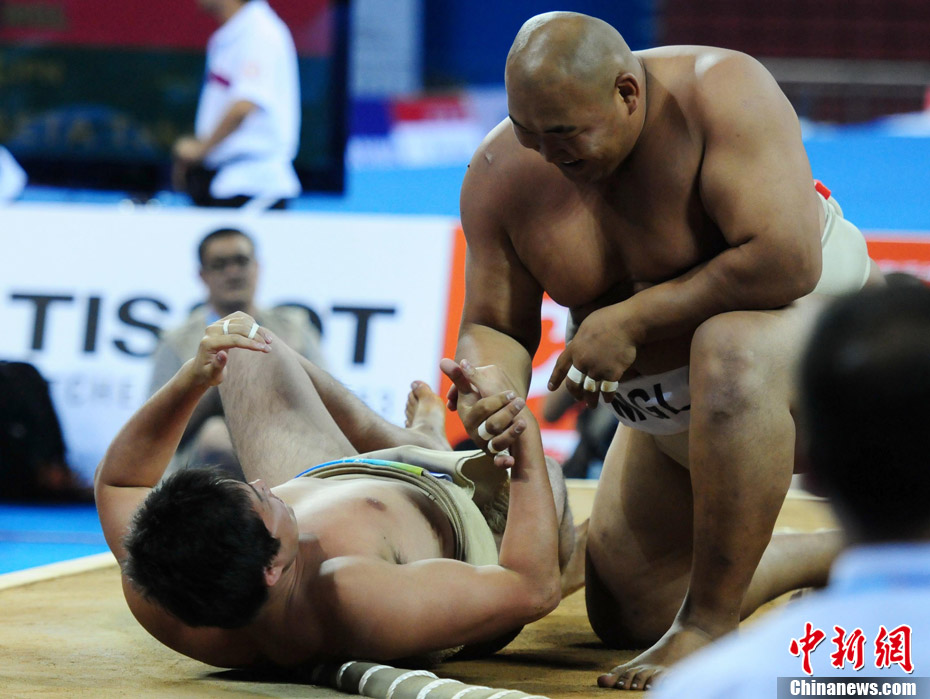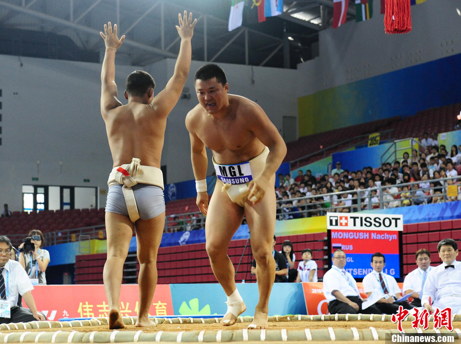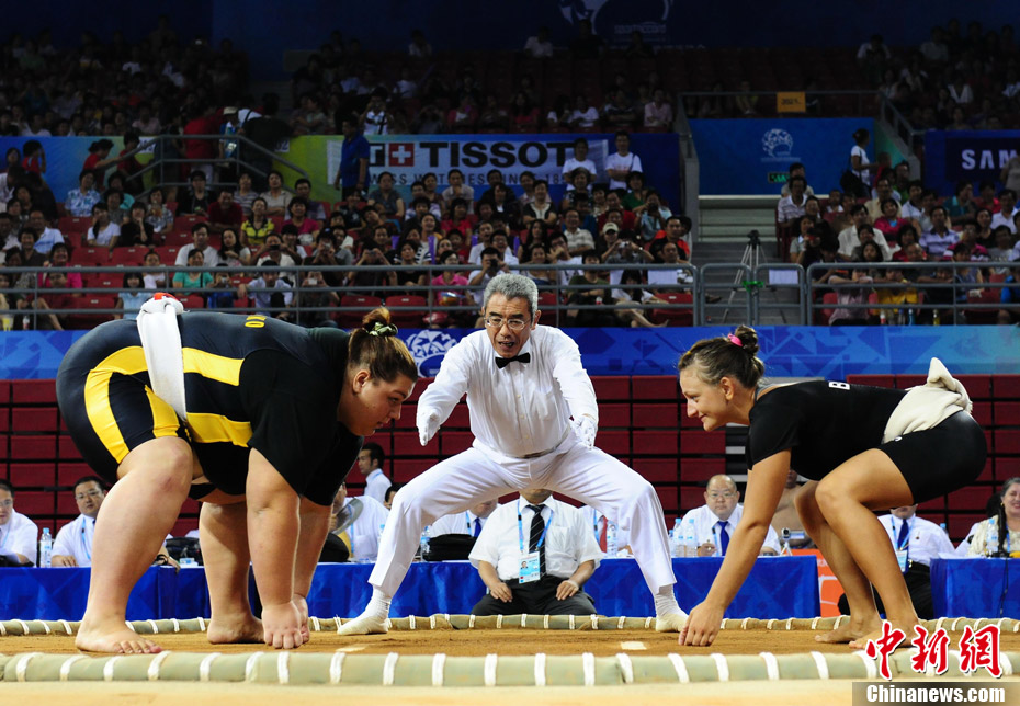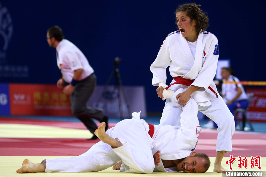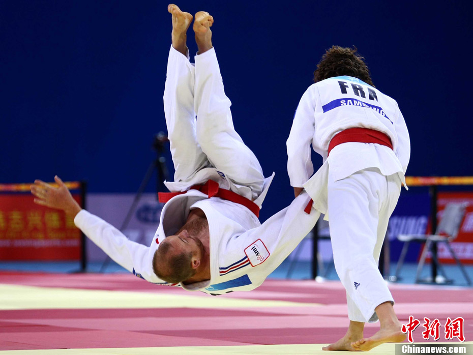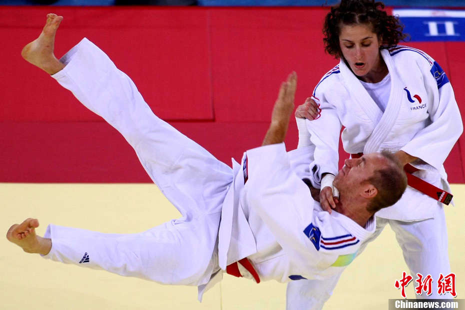 8月30日,男女选手在北京武搏会合气道比赛上演了“异性对决”。合气道是一种根源于日本大东流合气柔术的近代武术,合气道不注重比赛的胜负,没有跟别人较量的思想,而是跟他人一起锻炼和修养自己,因此才会有鲜见的异性同场对决的场面出现。本次武搏会,合气道将作为表演项目,无特别的规则,因此不能够严格地定义胜利者或者失败者。国际合气道联合会将组织高段教官来评判各项表演,表演赛分为基本技巧、高级技巧和复合技巧等三个单元。 中新社发 苏丹 摄