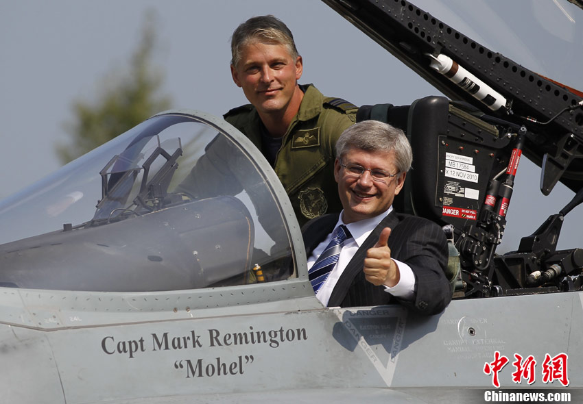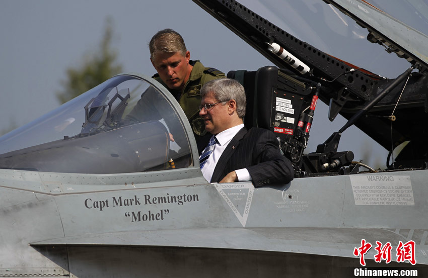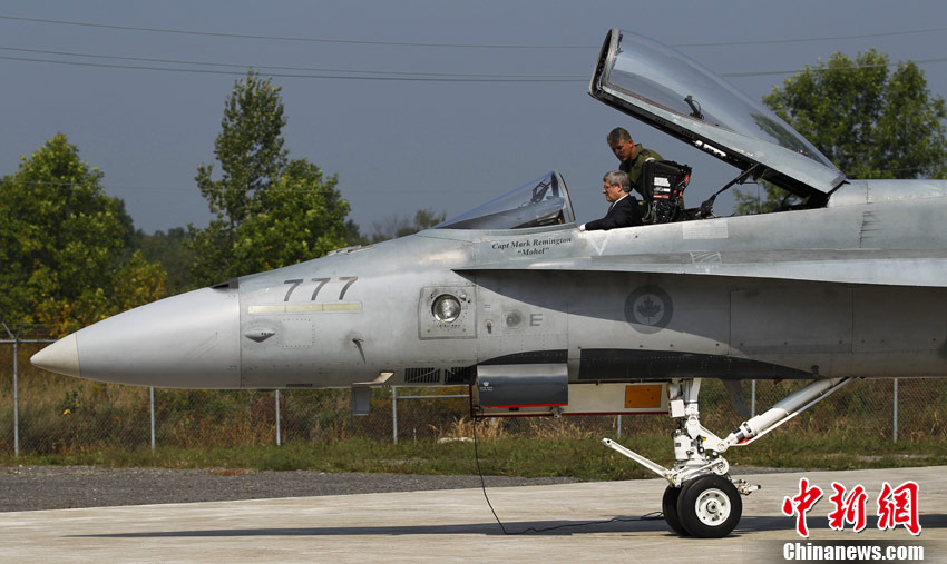 加拿大总理哈珀"试驾"CF-18"大黄蜂"战机