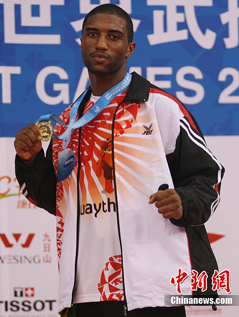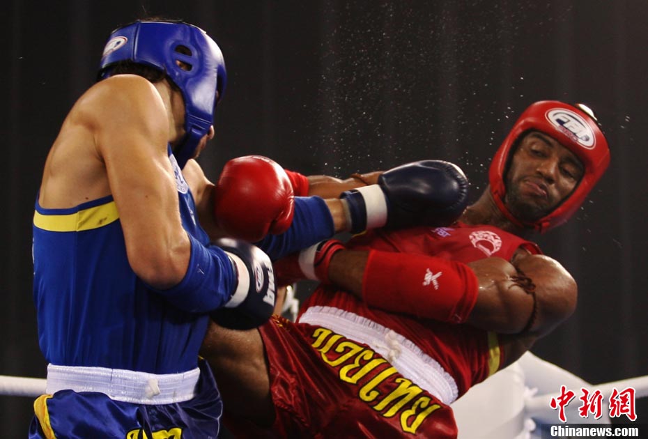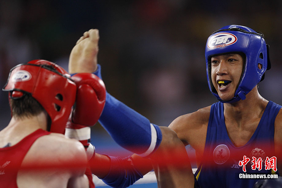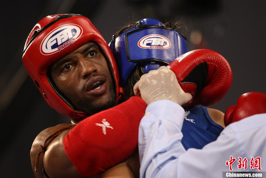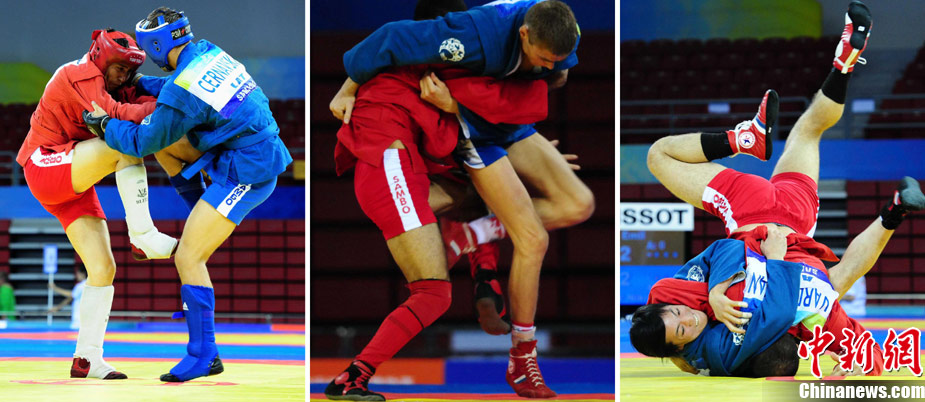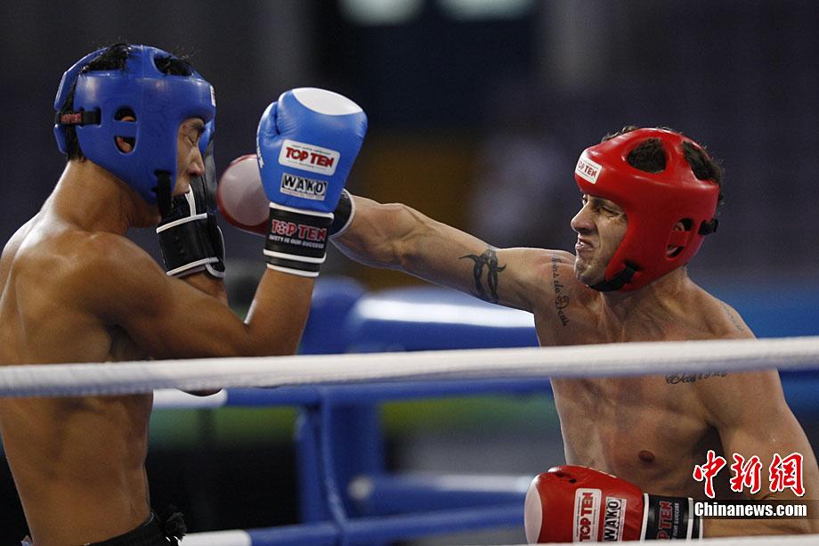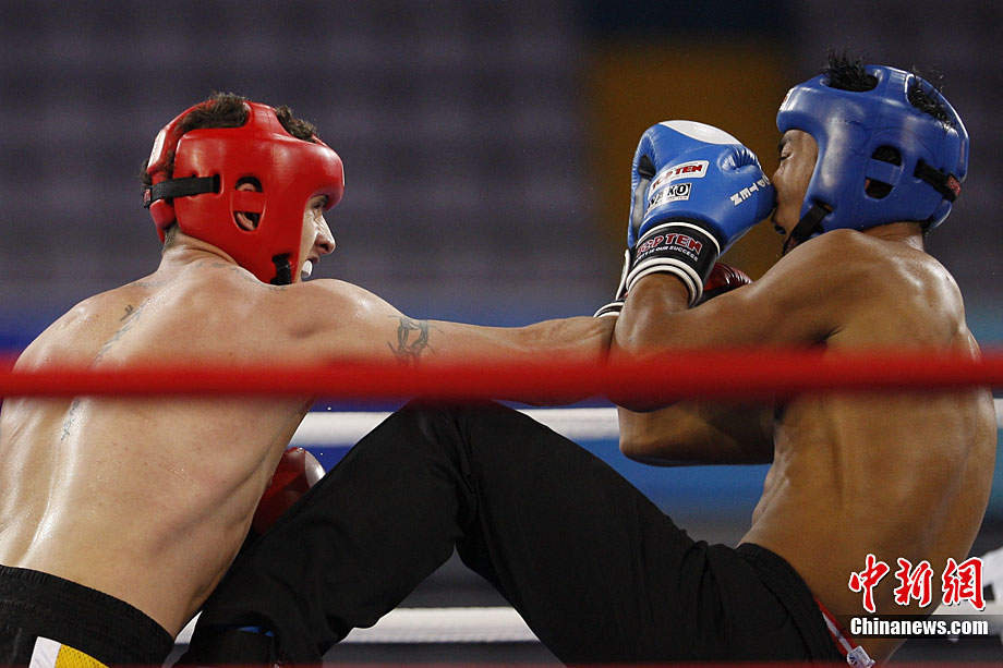 9月3日,2010年北京首届世界武搏运动会剑道比赛在北京科技大学体育馆开赛,当天举行男、女个人赛预赛和决赛及女子特殊邀请赛预赛和决赛。图为在男子个人邀请赛中,日本选手昭司寺本(Shoji TERAMOTO)(右)和巴西选手奥纳卡(Ernesto Eisaku ONAKA)在比赛中。中新社记者 盛佳鹏 摄
