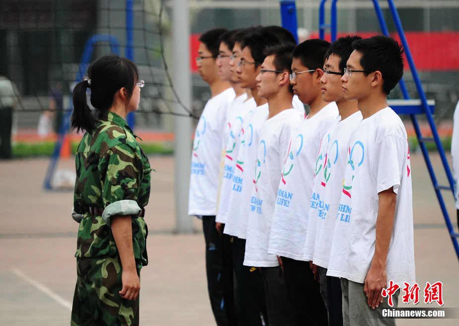 9月3日下午,中国农业大学校园内,刚入校的大一新生正在进行军训。中新社记者 侯宇 摄