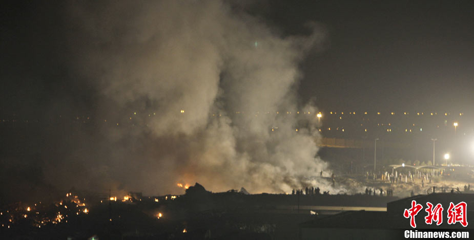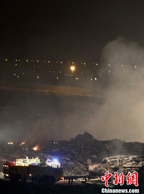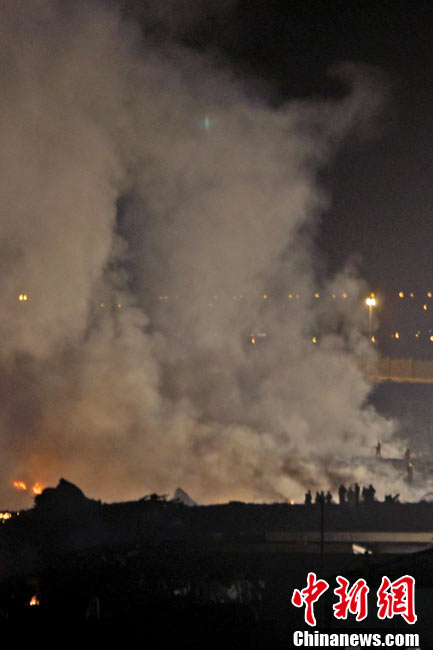 阿拉伯联合酋长国民航总局3日发表声明说,美国联合包裹服务公司(UPS)一架波音747-400货机当天晚上在迪拜坠毁,机上两名飞行员丧生。图为坠机现场。