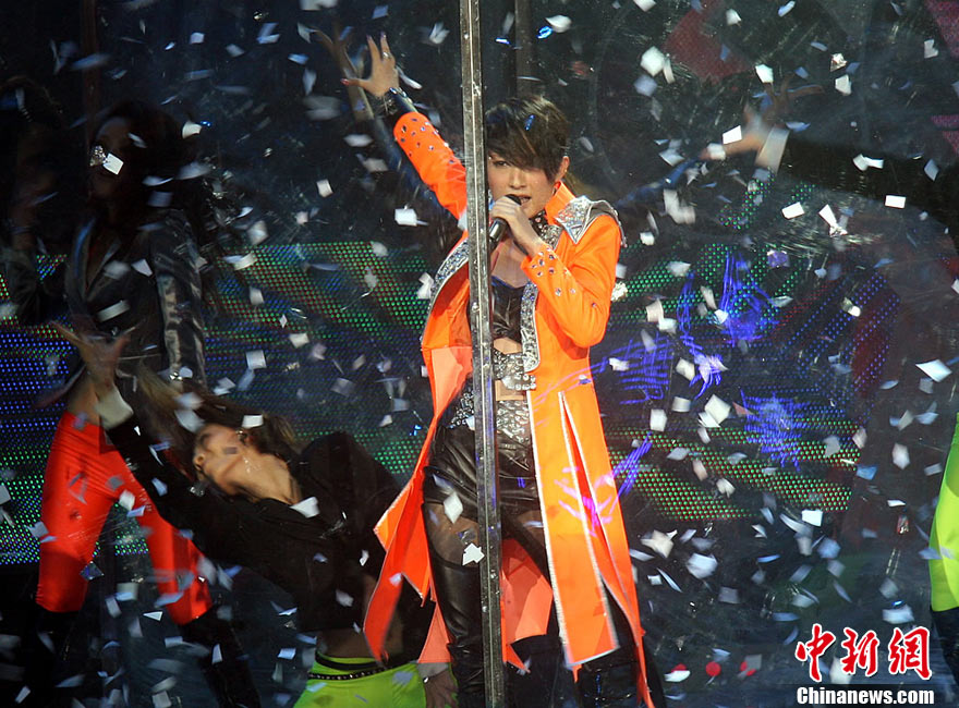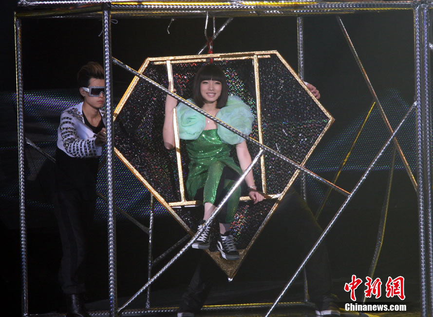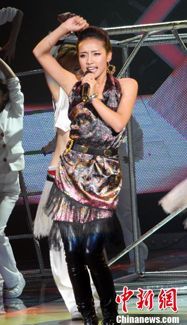 9月5日凌晨,拿下今年国内选秀节目首张“准生证”的“花儿朵朵”在长沙落下帷幕。经过长达五个多小时的马拉松式的比赛后,广西女孩莫龙丹(左)以绝对优势夺冠,蔡婷玉(中)和李慧分获亚、季军。中新社记者 邓霞 摄