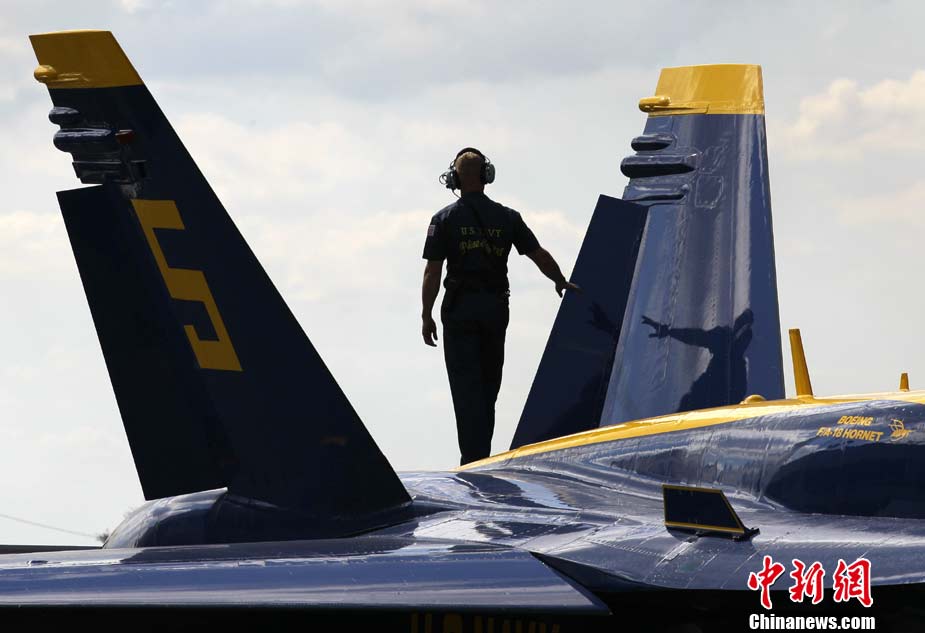 “蓝色天使”飞行表演队进行空中特技表演