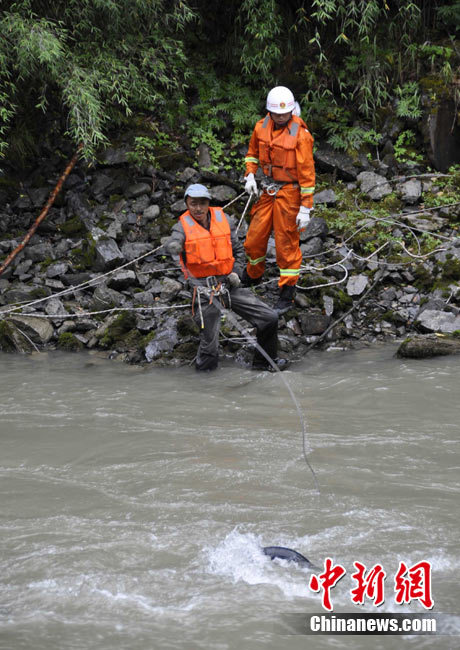 9月5日,四川马尔康梭磨乡发生一起车祸,导致两辆车坠入河中,目前,其中的一辆面包车已被打捞上岸,车内有3人丧生,另一辆皮卡车还在搜寻之中,事故原因正在进一步调查中。图为面包车被打捞上岸。中新社发 沈消轩 摄