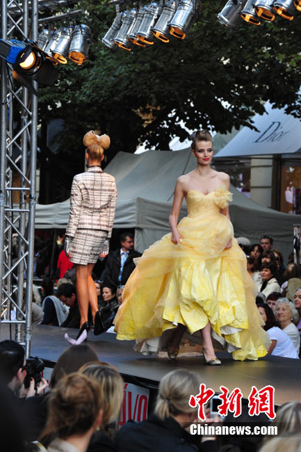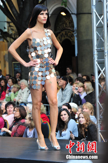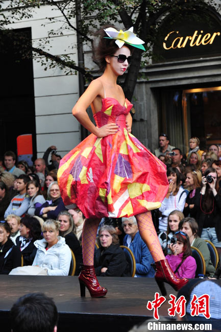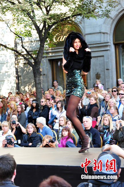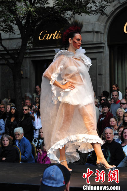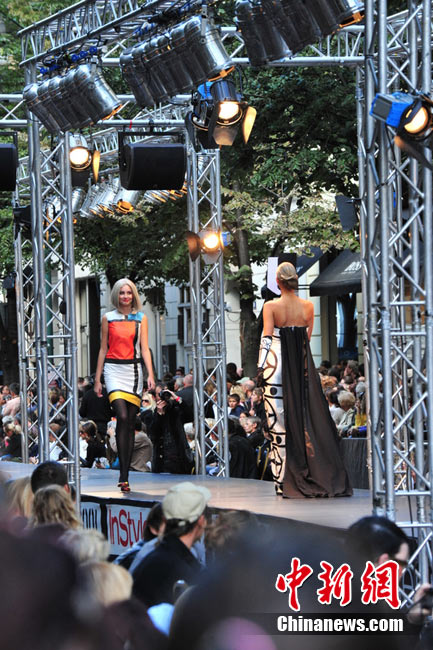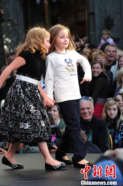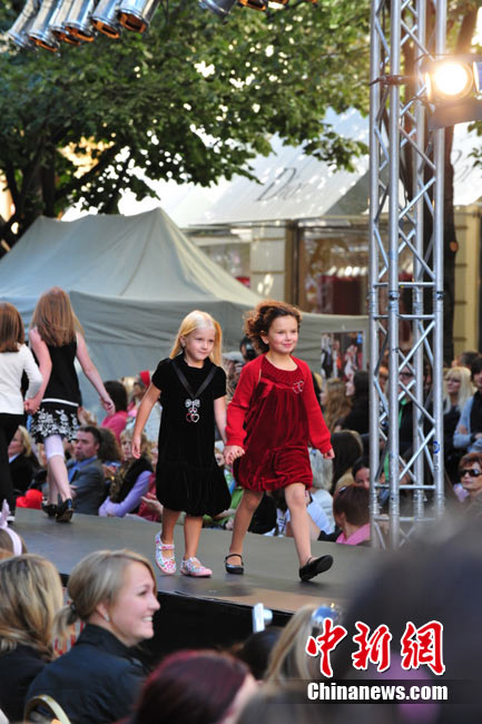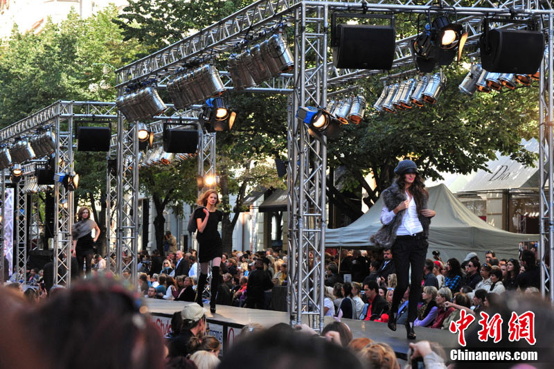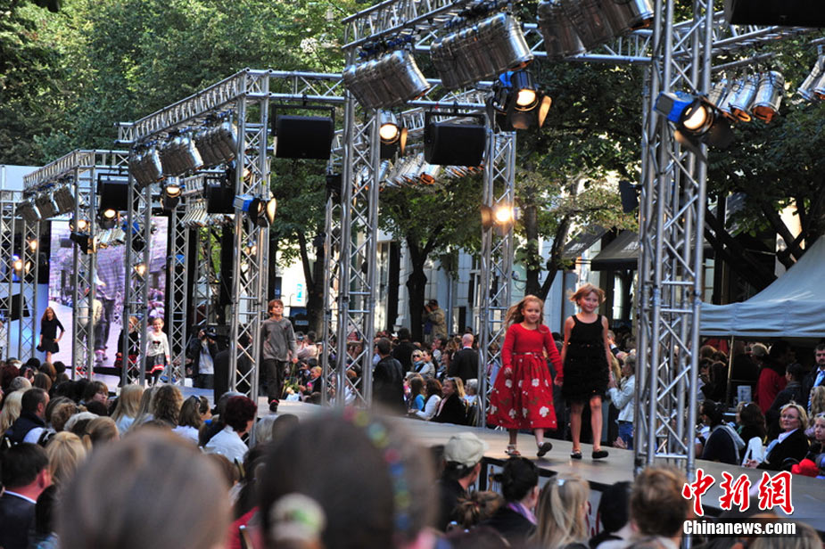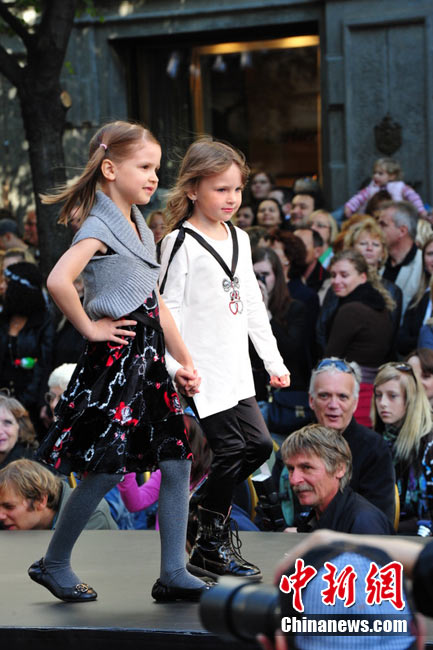 捷克首都布拉格4日和5日接连两天在市中心最繁华的商业街巴黎大街封闭车辆交通,在街道中间搭起长台,向公众表演时装秀。其中一组儿童秀引起观众轰动。黄频 摄