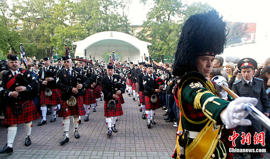 当地时间9月4日,第二届俄罗斯国际军乐节在莫斯科红场开幕。来自俄罗斯、美国、英国、哈萨克斯坦等9个国家的军乐团及演员参加了开幕式演出,为现场的数千名观众奉献了一场精彩纷呈的视听盛宴。
