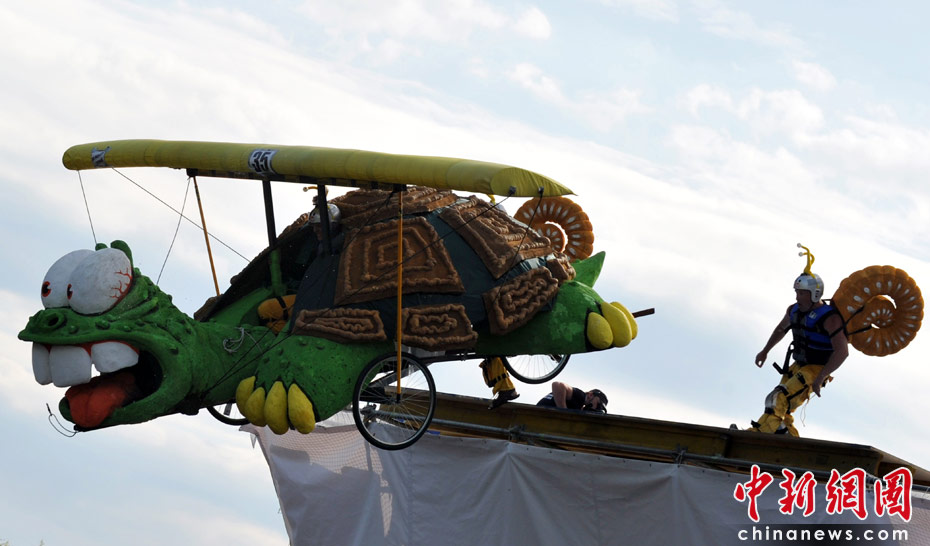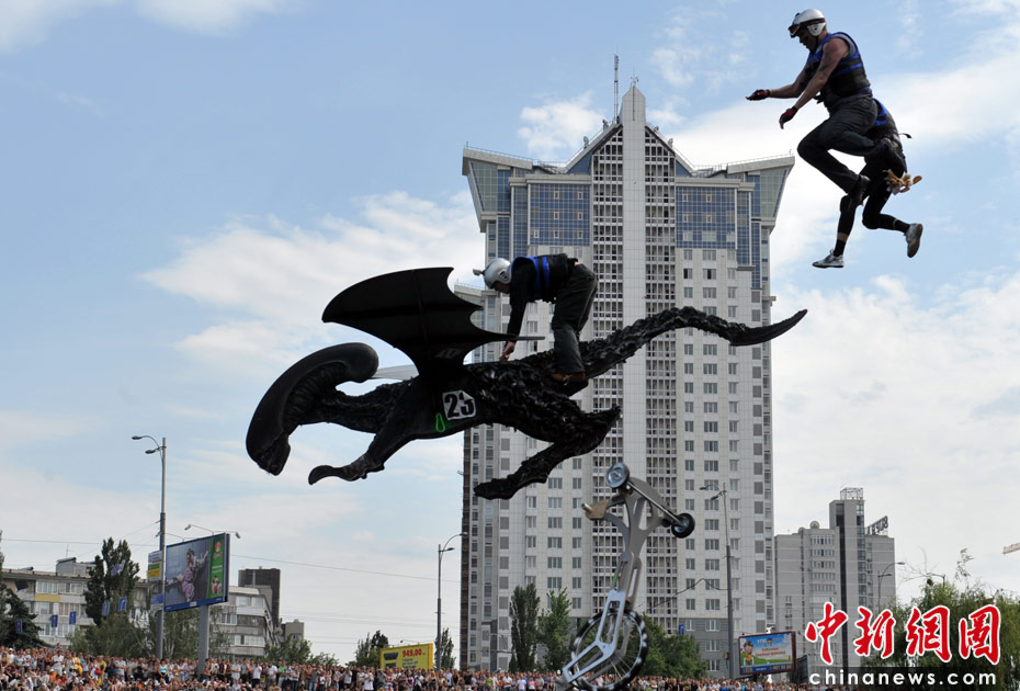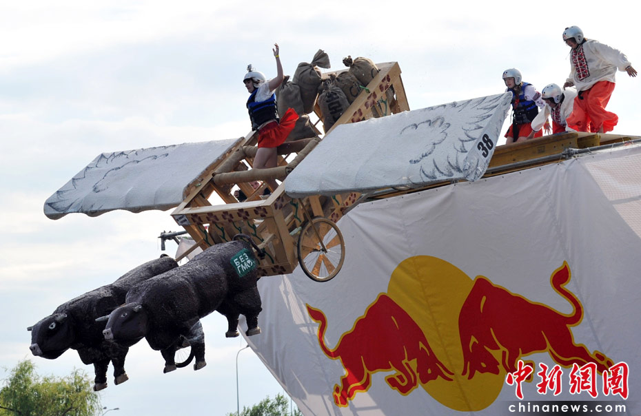 6月19日,乌克兰首都举办2010红牛杯“鸟人”大赛,约有39支队伍参加了自制飞行器滑翔大赛。