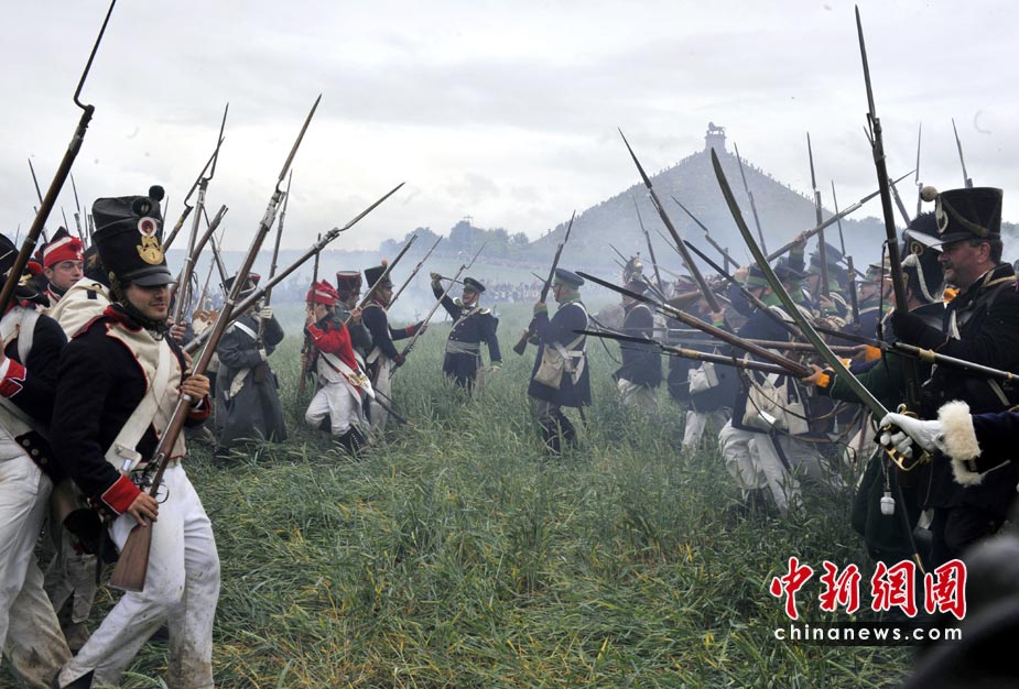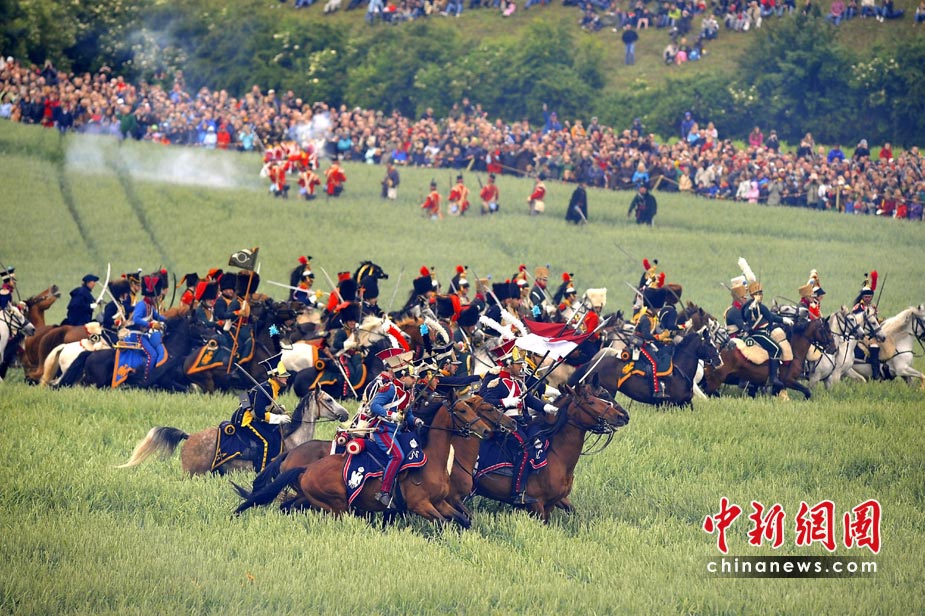 6月20日,在比利时首都布鲁塞尔以南20公里的滑铁卢,大约3000名来自多个国家的历史爱好者身着古军装,在滑铁卢安营扎寨,重现著名的滑铁卢战役。以此纪念滑铁卢战役195周年。